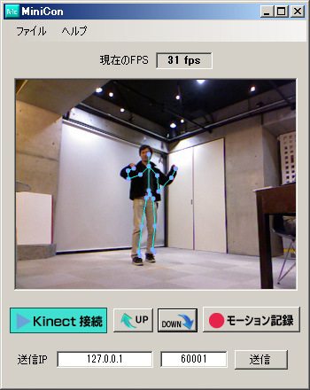 Minicon es un software de TV ASAHI para realizar mocap simple con un solo Kinect, se puede conectar diréctamente con un plugin “live” al Unity engine, para tener un feedback en tiempo real.